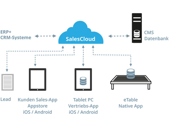 Alle multimedialen Inhalte und Vertriebspräsentationen sind in der SalesCloud für alle mobile Tablet PCs sowie für Messepräsentationssysteme verfügbar.